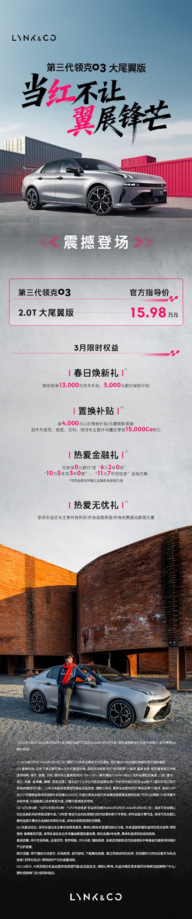 此外,新车还推出3月限时购车权益,2026年3月1日-31日完成下订及提车的用户,可享18000元春日焕新礼,旧车不限品牌享4000元置换补贴,领克、极氪、吉利、银河车主还可叠加15000Co积分。